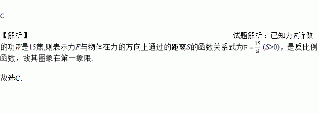 已知力F所作的功是15焦,则力F与物体在力的方向通过的距离S之间关系的图象大致是( )