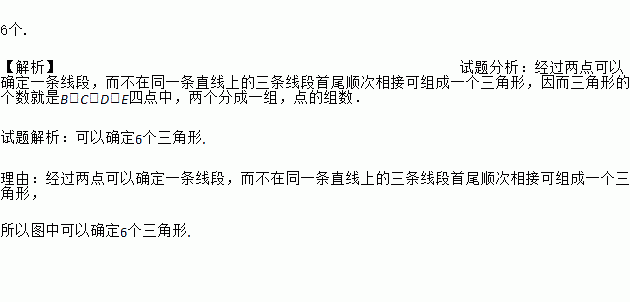 如图,点B、C、D、E共线,试问图中A、B、C、D、E五点可确定多少个三角形?说明理由.
