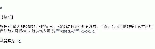 如果m是最大的负整数,n是绝对值最小的有理数,c是倒数等于它本身的自然数,那么代数式m2015+2016n+c2017的值为