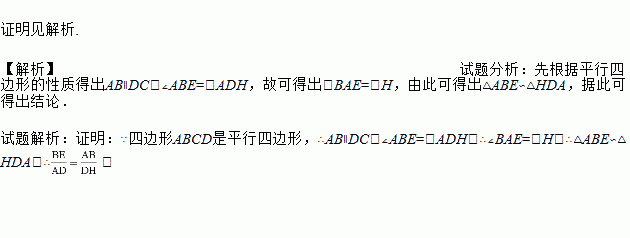 如图,点H在平行四边形ABCD的边DC延长线上,连结AH分别交BC、BD于点E、F,求证:.