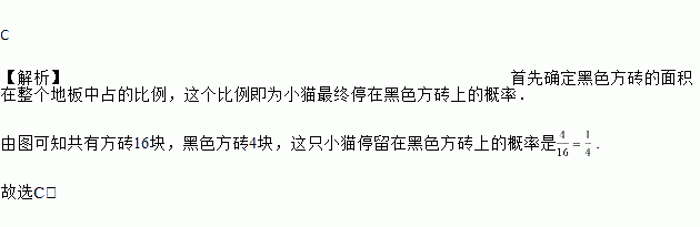 如图所示是一块黑白相间的正方形地板(图中每块方砖除颜色外完全相同),一只小猫在上面自由地走来走去,并随意停留在某块方砖上,那么这只小猫停留在黑色方砖上的概率是( )
