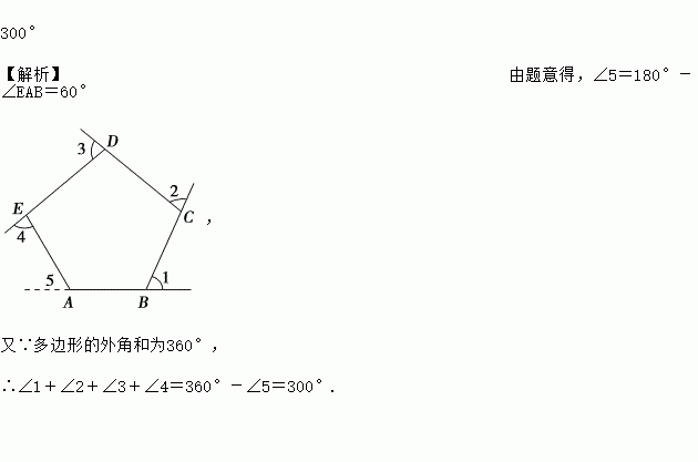 如图,∠1、∠2、∠3、∠4是五边形ABCDE的4个外角.若∠A=120°,则∠1+∠2+∠3+∠4= .