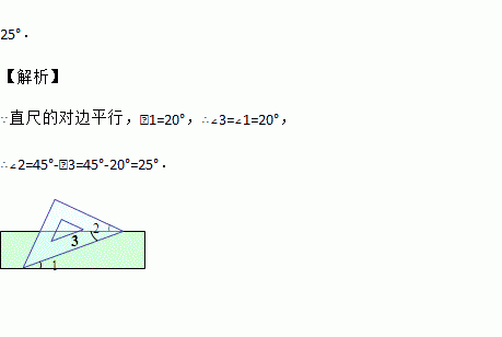 如图,把一块含有45°角的直角三角板的两个顶点放在直尺的对边上.如果∠1=20°,那么∠2的度数是_____.