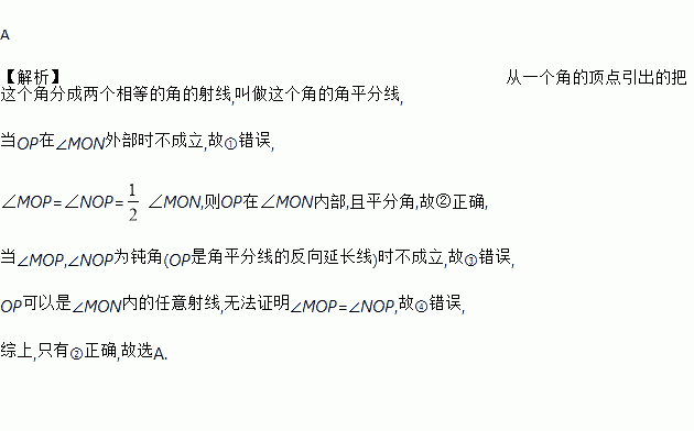 ∠MON;③∠MOP=∠NOP;④∠MON=∠MOP+∠NOP.其中,能说明射线OP一定为∠MON的平分线的有( )