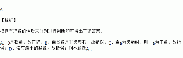 A. 是整数 B. 自然数就是整数 C. 是负数 D. 零是最小的整数