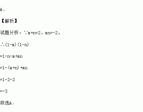 已知m+n=2,mn=-2,则(1-m)(1-n)的值为( )