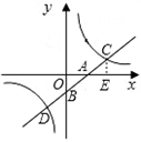 如图,一次函数的图象与x轴、y轴分别交于A、B两点,与反比例函数的图象交于C、D两点,如果A点的坐标为(2,0),点C、D分别在第一、第三象限,且OA=OB=AC=BD,试求