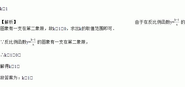 已知反比例函数y=(k是常数,k≠1)的图象有一支在第二象限,那么k的取值范围是_____.