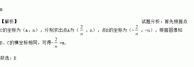 在第一象限的分支上的一个动点,连接AO并延长交另一分支于点B,过点A作y轴的垂线,过点B作x轴的垂线,两垂线交于点C,随着点A的运动,点C的位置也随之变化.设点C的坐标为(m,n),则m,n满足的关系式为( )