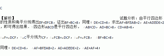 如图,在?ABCD中,AB=6,BC=8,∠BCD的平分线交AD于点E,交BA的延长线于点F,则AE+AF的值等于( )