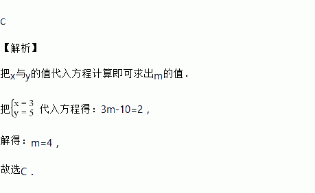 是方程mx﹣2y=2解,则m的值为( )