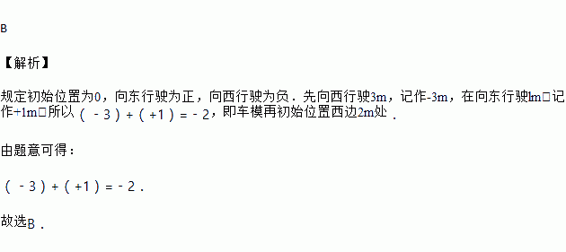 在学习“有理数的加法与减法运算”时,我们做过如下观察:“小亮操控遥控车模沿东西方向做定向行驶练习,规定初始位置为0,向东行驶为正,向西行驶为负.先向西行驶3m,在向东行驶lm,这时车模的位置表示什么数?”用算式表示以上过程和结果的是( )