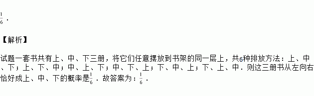 一套书有上、中、下三册,将它们任意摆放到书架的同一层上,这三册书从左向右恰好成上、中、下顺序的概率为__ __.