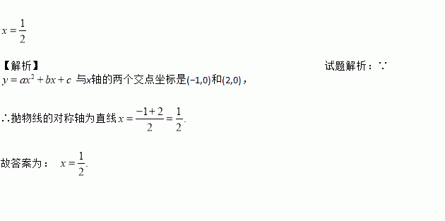 若抛物线与轴的两个交点坐标是(-1,0)和(2,0),则此抛物线的对称轴是直线_____.