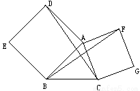 以△ABC的AB、AC为边分别作正方形ADEB、ACGF,连接DC、BF:
