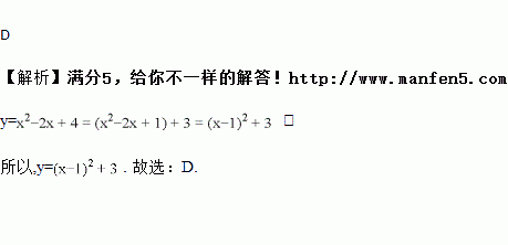 A. y=(x+1)2+3 B. y=(x﹣2)2+3 C. y=(x﹣1)2+5 D. y=(x﹣1)2+3