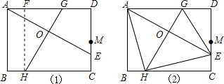 如图,矩形ABCD,M为CD中点,点E在线段MC上运动,GH垂直平分AE,垂足为O,分别交于AD、BC于点G、H,AB=3,BC=4.