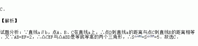 如图,已知直线a∥b,点A、B、C在直线a上,点D、E、F在直线b上,AB=EF=2,若△CEF的面积为5,则△ABD的面积为( )