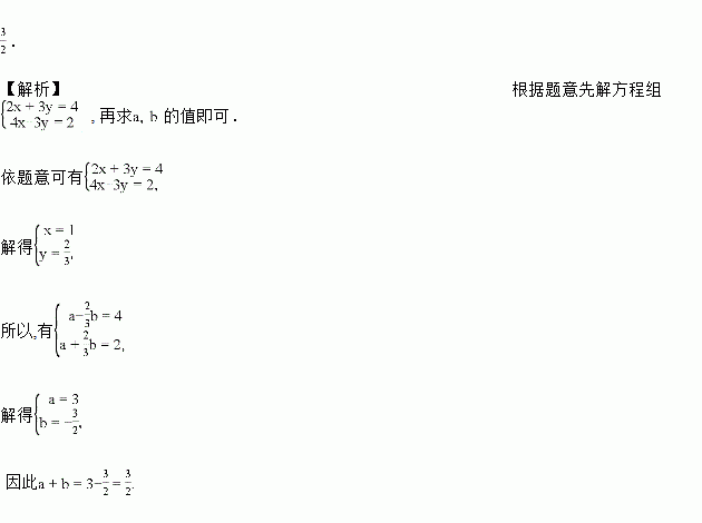 已知方程组与的解相同,试求a+b的值.