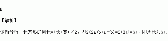 B 【解析】 试题分析:长方形的周长=(长+宽)×2,即2(2a+b+a-b)=2(3a)=6a,即周长为6a.