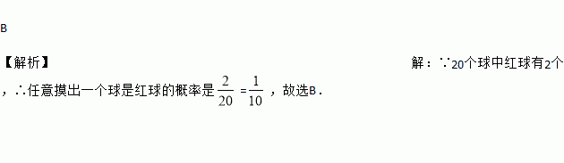 一个不透明的袋中共有20个球,它们除颜色不同外,其余均相同,其中8个白球,5个黄球,5个绿球,2个红球,则任意摸出一个球是红球的概率是( )