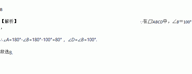 在□ABCD中,∠B=100°,则∠A,∠D的度数分别是( )