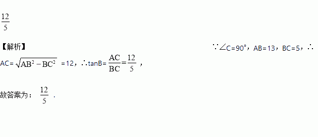 在△ABC中,∠C=90°,AB=13,BC=5,则tanB=________.