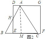 (2)如图2,当点A与点D重合时,作∠ABE的角平分线EM交AE于M点,将△ABM绕点A逆时针旋转,使边AB与边AC重合,得到△ACN.在线段AG上是否存在H点,使得△ANH为等腰三角形.如果存在,请求出线段EH的长度;若不存在,请说明理由.
