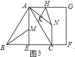 ③AH=NH时,此时H点为线段AN的中垂线与AG的交点,如图3,![]()