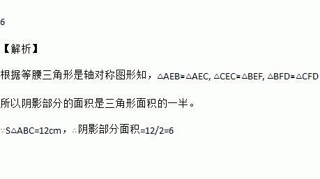 如图,在△ABC中,AB=AC,AD是BC边上的高,点E、F是AD的三等分点,若△ABC的面积为12cm2,则图中阴影部分的面积是_____cm2.