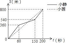 为增强学生体质,某中学在体育课中加强了学生的长跑训练.在一次女子800米耐力测试中,小静和小茜在校园内200米的环形跑道上同时起跑,同时到达终点;所跑的路程S(米)与所用的时间t(秒)之间的函数图象如图所示,则她们第一次相遇的时间是起跑后的第( )秒