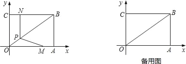 如图,在平面直角坐标系中,矩形OABC的边OA=4,OC=3,且顶点A、C均在坐标轴上,动点M从点A出发,以每秒1个单位长度的速度沿AO向终点O移动;点N从点C出发沿CB向终点B以同样的速度移动,当两个动点运动了x秒(0<x<4)时,过点N作NP⊥BC交BO于点P,连接MP.