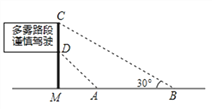 如图,是矗立在高速公路水平地面上的交通警示牌,经测量得到如下数据:AM=4米,AB=8米,∠MAD=45°,∠MBC=30°,则警示牌的高CD为_______米(结果保留根号).