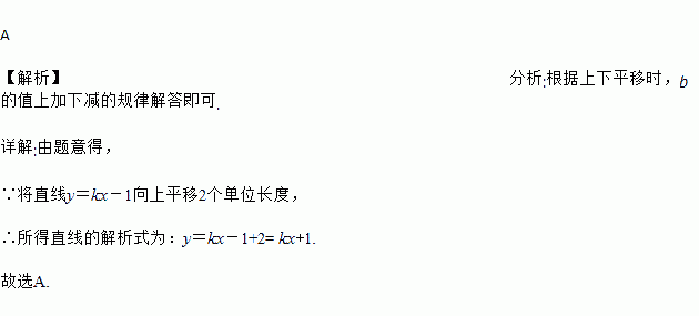 将直线y=kx-1向上平移2个单位长度,可得直线的解析式为( )