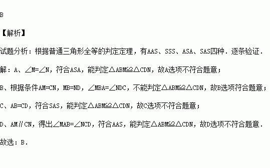 A.∠M=∠N B.AM=CN C.AB=CD D.AM∥CN