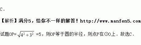 若圆的半径是5,圆心的坐标是(0,0),点P的坐标是(-4,3),则点P与⊙O的位置关系是( )