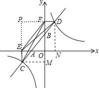 分析:点P为CE、DF的延长线的交点,CM⊥y轴于M,DN⊥x轴于N,根据反比例函数的比例系数的几何意义得到S矩形ECMO=CM•CE=k,S矩形FDNO=FD•DN=k,则S△CEF=