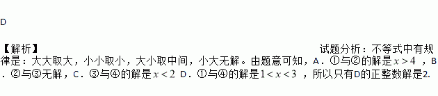 已知不等式:①x>1,②x>4,③x<2,④2-x>-1.从这四个不等式中选取两个,构成正整数解是2的不等式组,应选取的是