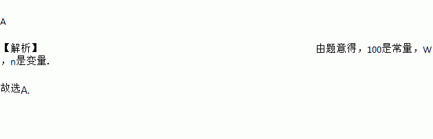 小王计划用100元钱买乒乓球,所购买球的个数为W个,每个球的单价为n元,其中( )