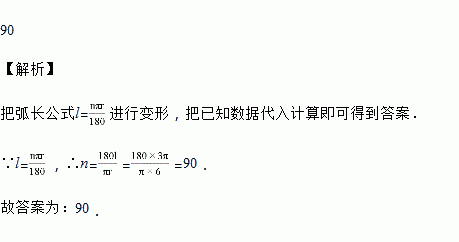 已知一条弧的长是3πcm,弧的半径是6cm,则这条弧所对的圆心角是_______度