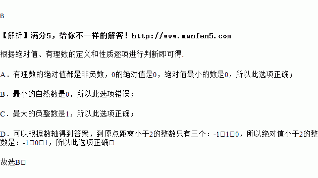C. 最大的负整数是 D. 绝对值小于的整数是:,,