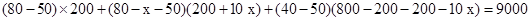 某批发商以每件50元的价格购进800件T恤,第一个月以单价80元销售,售出了200件;第二个月如果单价不变,预计仍可售出200件,批发商为增加销售量,决定降价销售,根据市场调查,单价每降低1元,可多售出10件,但最低单价应高于购进的价格;第二个月结束后,批发商将对剩余的T恤一次性清仓销售,清仓是单价为40元,设第二个月单价降低x元。