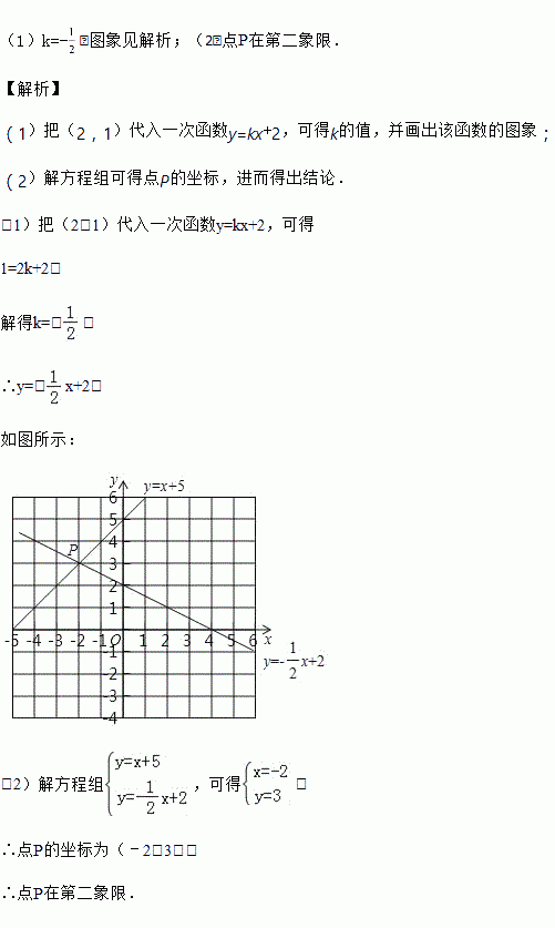 (2)若y=kx+2的图象与y=x+5的图象相交于点P,试判断P点的象限并说明理由.