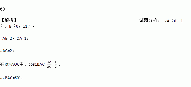 如图,已知点A(0,1),B(0,﹣1),以点A为圆心,AB为半径作圆,交x轴的正半轴于点C,则∠BAC等于______度.