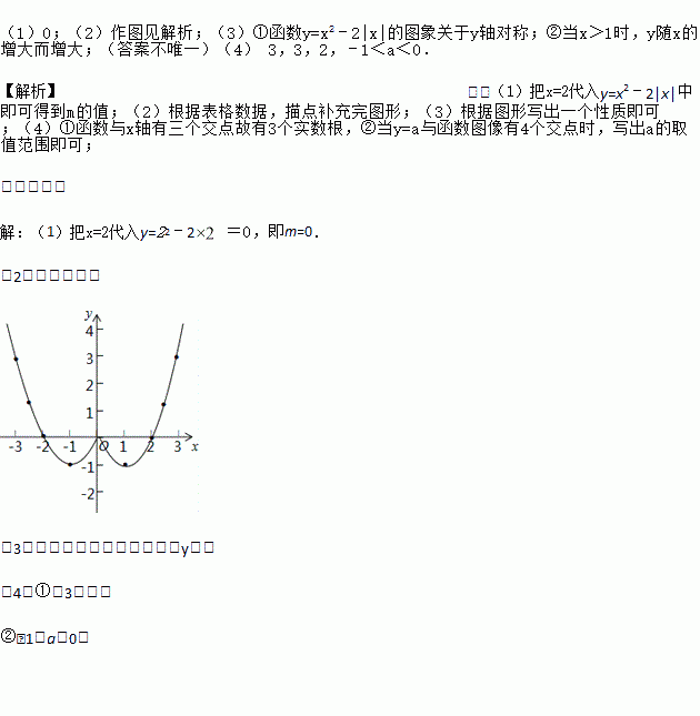①函数图象与x轴有 个交点,所以对应的方程x2﹣2|x|=0有 个实数根;