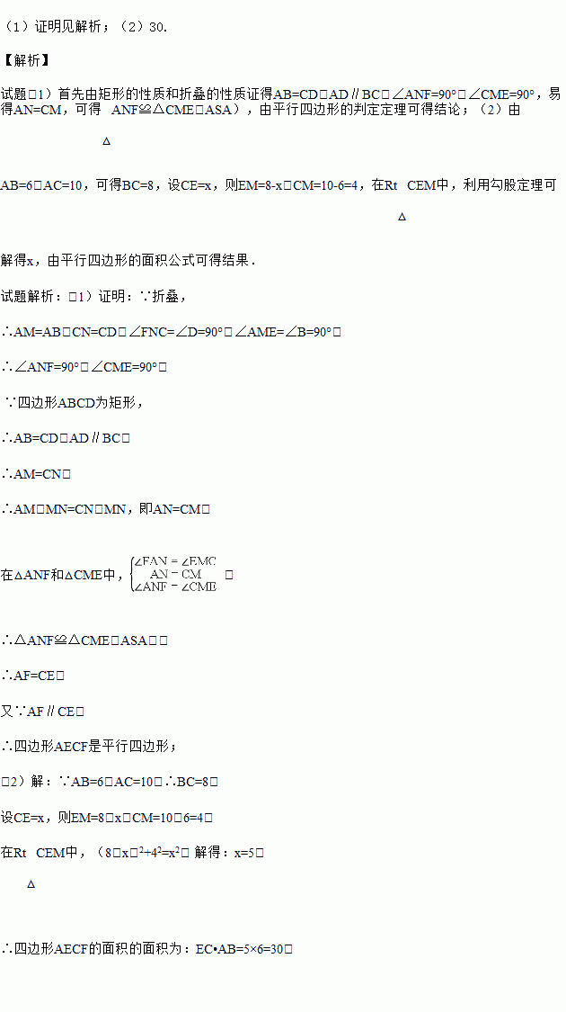 (1)求证:四边形AECF是平行四边形;