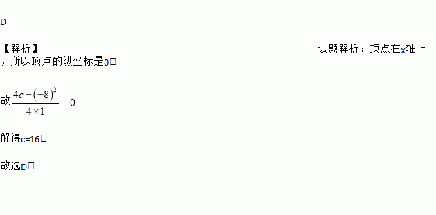 已知抛物线y=x2﹣8x+c的顶点在x轴上,则c等于( )