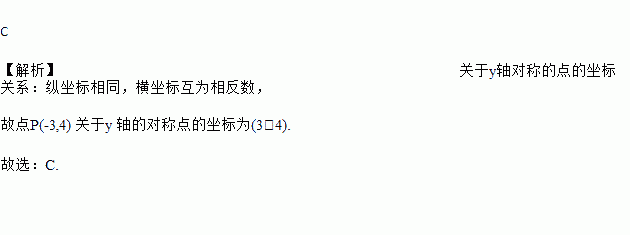 在平面直角坐标系中,点P(-3,4) 关于y 轴的对称点的坐标为(