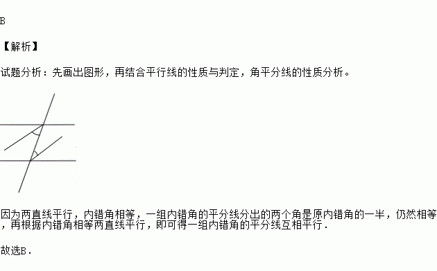 如果两条直线被第三条直线所截,那么一组内错角的平分线( )