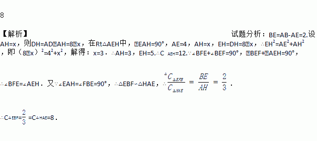 如图,将矩形ABCD沿GH对折,点C落在Q处,点D落在E处,EQ与BC相交于F.若AD=8cm,AB=6cm,AE=4cm.则△EBF的周长是_____cm.